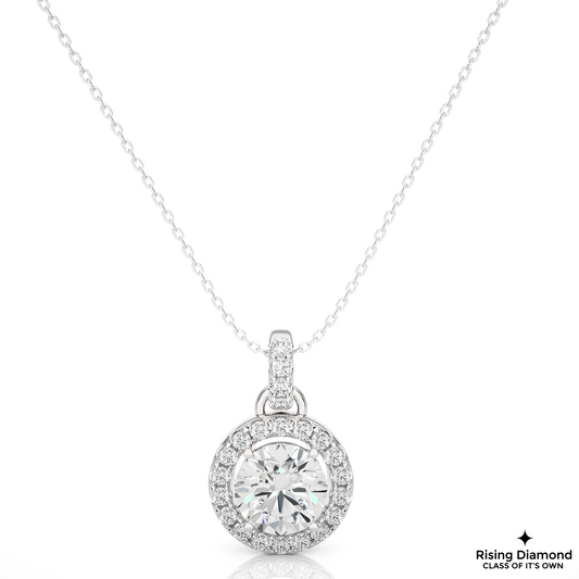 1.30 CT Round Cut Lab Grown Diamond Solitaire Necklace in Halo Setting