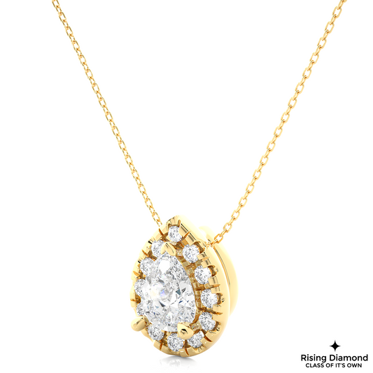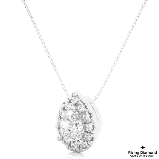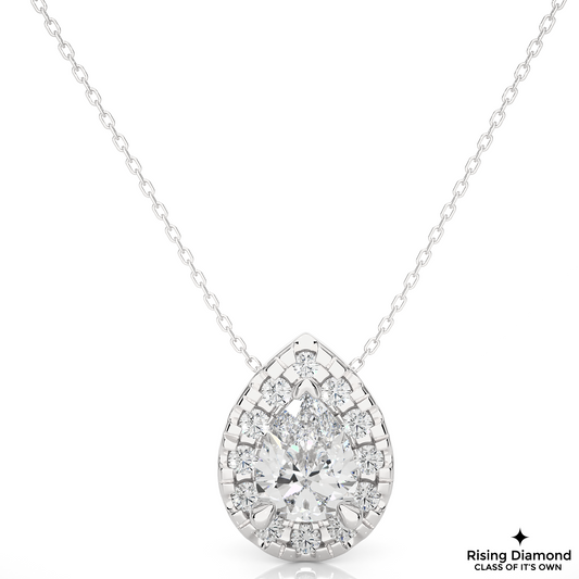 1.25 CT Pear Cut Lab Grown Diamond Halo Necklace