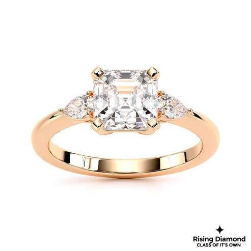 1.0 Ct Asscher F/VS2 Lab Grown Diamond Three Stone Ring