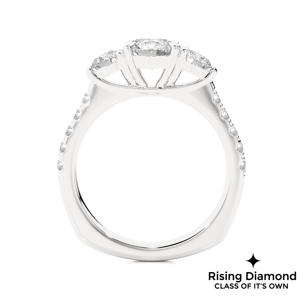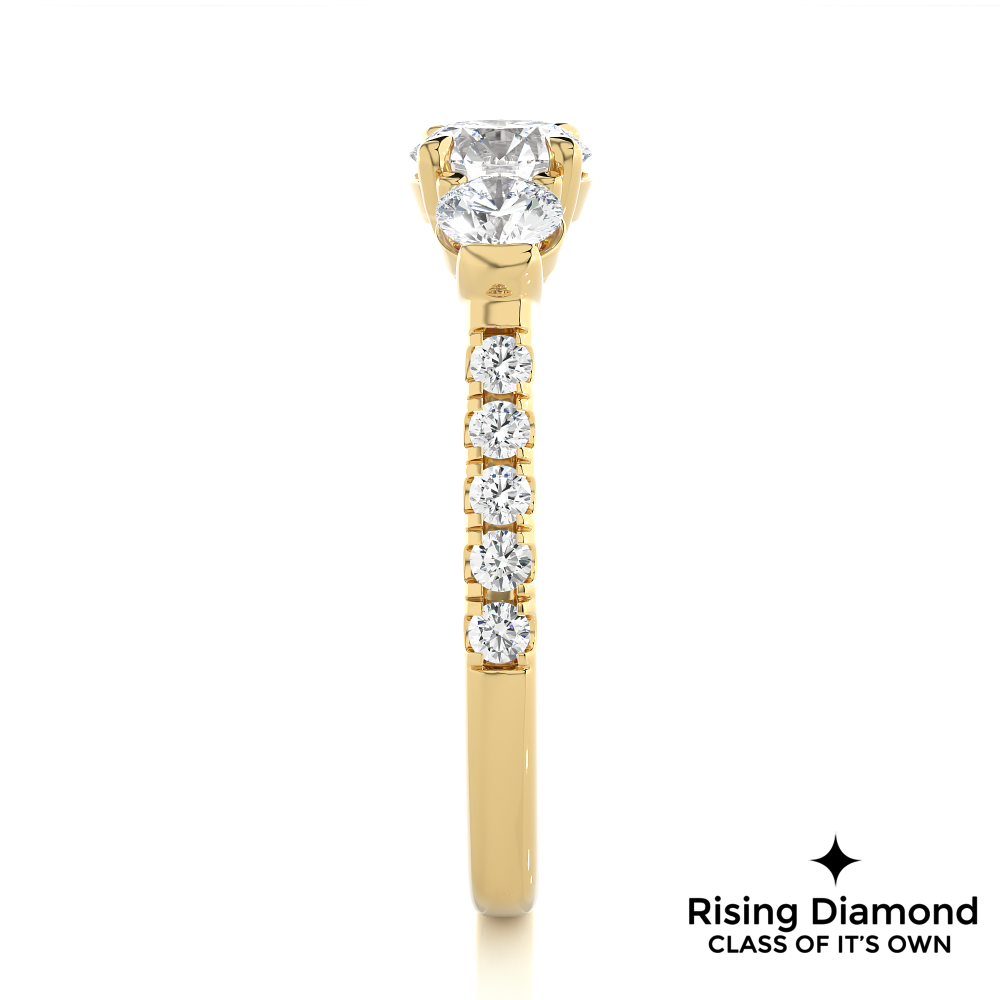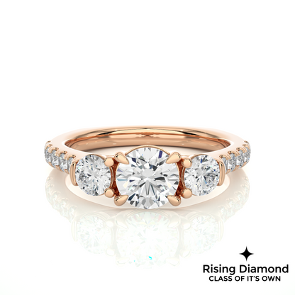 1.31 Ct Round Cut Colorless Moissanite Three Stone Gold Engagement Ring